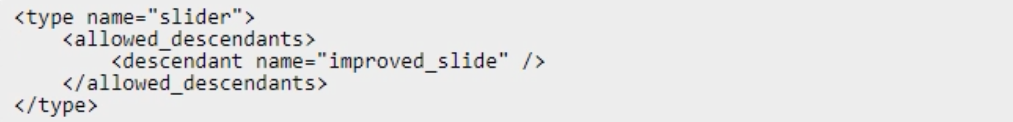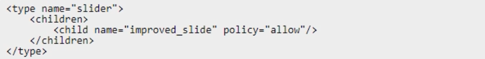 Log In / Sign UpAn Adobe Commerce developer has been asked to modify the PageBuilder slider content type to allow a new custom content type (other than slide) to be assigned as a child. The developer has already created the new content type called improved_slide in their module. They now need to create a new view/adminhtml1/pagebuilder/content_type/slider.xml file in their module to allow the new content type to be a child of slider content types.