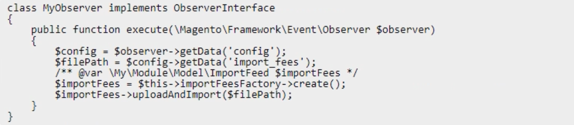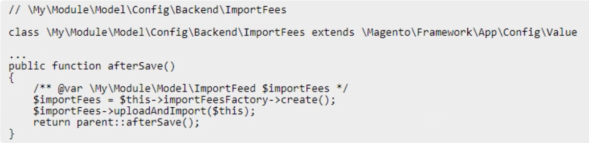 A logistics company with an Adobe Commerce extension sends a list of reviewed shipment fees to all its clients every month in a CSV file. The merchant then uploads this CSV file to a "file upload" field in admin configuration of Adobe Commerce.