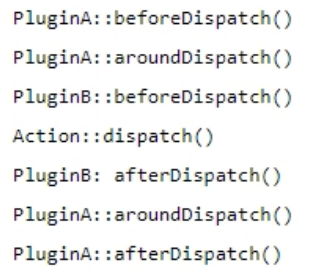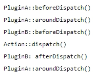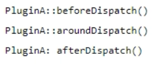 The PluginA has the methods: beforeDispatch, aroundDispatch, afterDispatch.