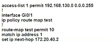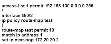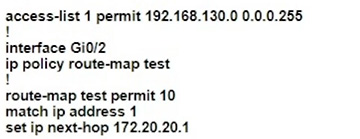 Which policy configuration on R1 forwards any traffic that is sourced from the 192.168.130.0/24 network to R2?
