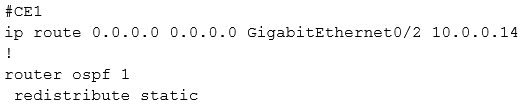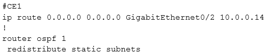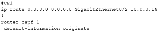 Refer to the exhibit. CE1 is the gateway router into the provider network via PE1. A network operator must inject a default route into OSPF area 0. All devices inside area 0 must be able to reach PE1. Which configuration achieves this goal?