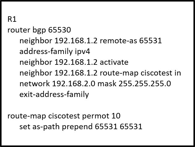 CThe weight attribute can be applied on R2 to influence AS 65513 to use AS 65515 as the primary path.