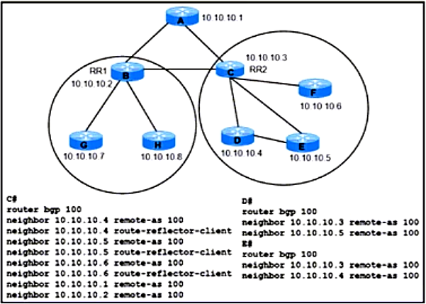 BDisable BGP client-to-client reflection on router RR2.