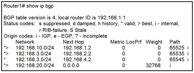 Refer to the exhibit. Which attribute can router 1 alter so that only other iBGP peers prefer to use 192.168.4.2 as the next hop for route 192.168.3.0/24?