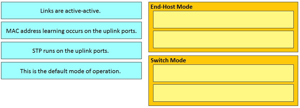 Drag and drop the feature descriptions from the left onto the correct UCS Fabric Interconnect modes on the right.