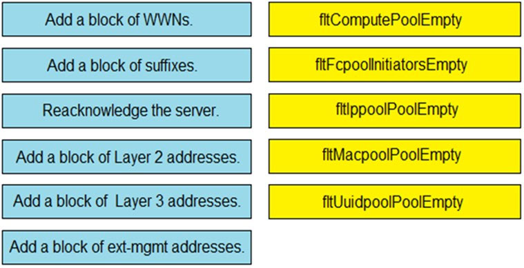Drag and drop the actions from the left onto the faults that they resolve on the right. Not all actions are used.