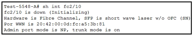 Refer to the exhibit. A new Cisco Nexus 5548 Switch connects to a network. SAN switching is configured on the switch. The switch fc2/10 NP uplink is shown in the exhibit. Which action ensures that fc2/10 is in an up state?