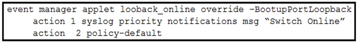 Refer to the exhibit. The EEM script overrides all events in the system policy. What should be added to the script to resolve the issue?