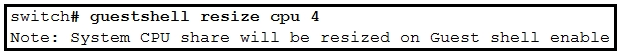 Refer to the exhibit. After the configuration is performed, the Guest shell continues to use 2% CPU. Which action resolves the issue?