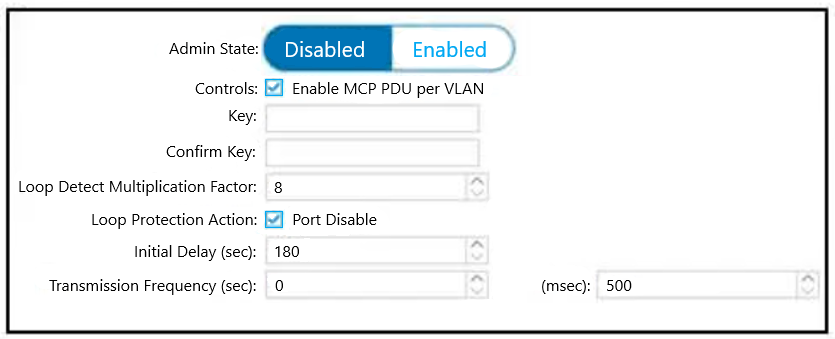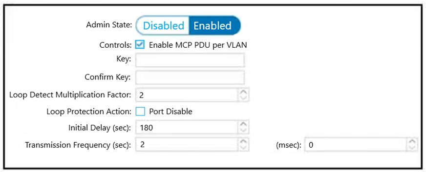 A network engineer must configure a Cisco ACI system to detect network loops for untagged and tagged traffic. The loop must be detected and stopped by disabling an interface within 4 seconds. Which configuration must be used?