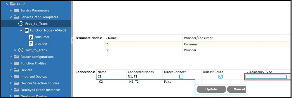 Refer to the exhibit. Which Adjacency Type value should be set when the client endpoint and the service node interface are in a different subnet?