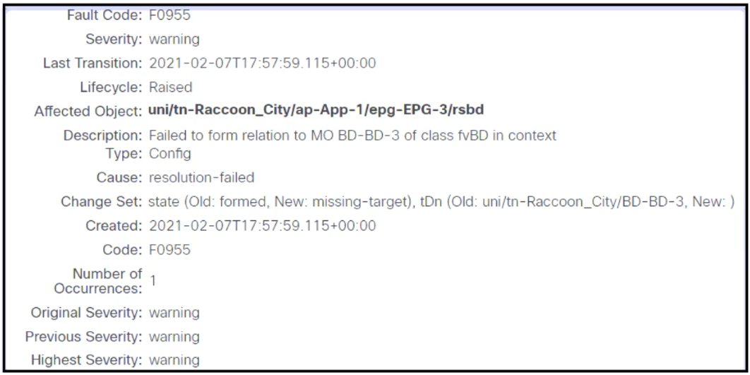 Refer to the exhibit. A Cisco APIC raises this fault when connectivity for EPG-3 is configured. Which action clears the fault?