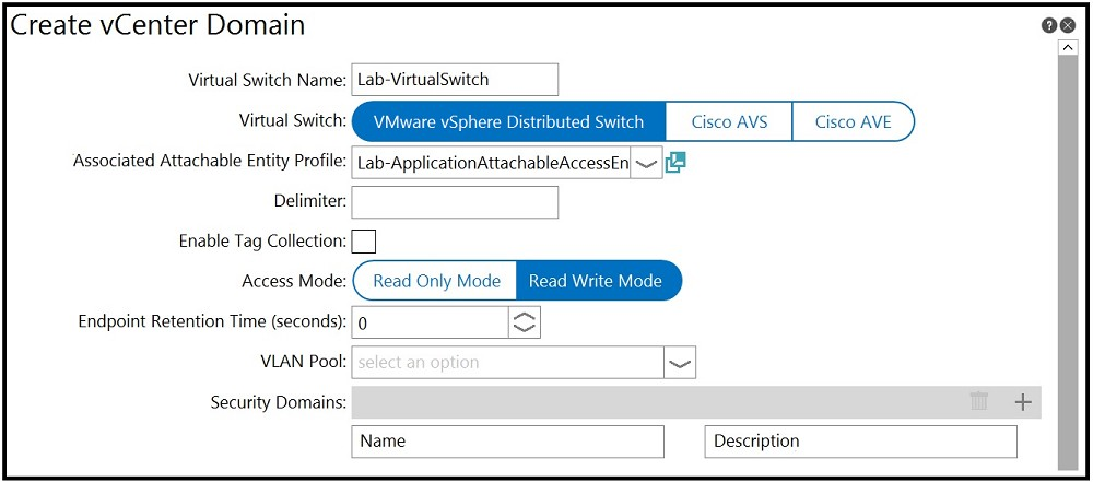 Refer to the exhibit. An engineer is integrating a VMware vCenter with Cisco ACI VMM domain configuration. ACI creates port-group names with the format of