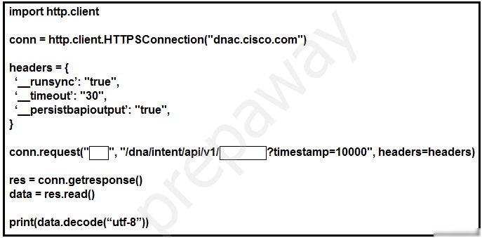 Refer to the exhibit. Which configuration of method and parameter retrieves the health of a laptop connected to the network from Cisco DNA Center?