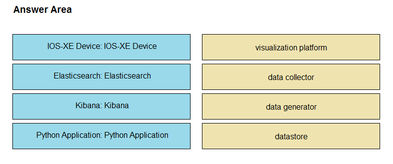 An application is being built to collect and display telemetry streaming data. Drag and drop the elements of this stack from the left onto the correct element functions on the right.