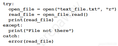 Refer to the exhibit. A developer created the code, but it fails to execute.