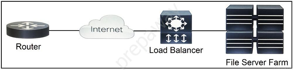 Refer to the exhibit. Which two functions are performed by the load balancer when it handles traffic originating from the Internet destined to an application hosted on the file server farm? (Choose two.)