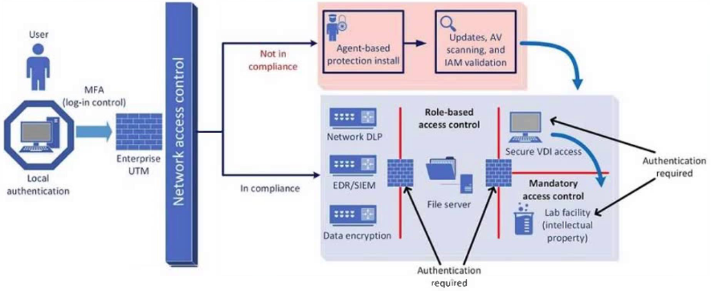 A company plans to implement a research facility with intellectual property data that should be protected. The following is the security diagram proposed by the security architect: