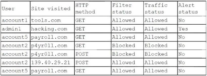 A security analyst is reviewing the following log: