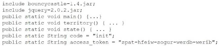 A security analyst is reviewing the following code in the public repository for potential risk concerns: