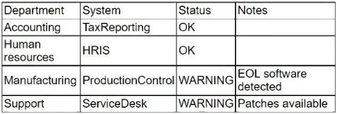 During a recent audit, a company's systems were assessed. Given the following information: