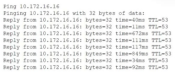 A network administrator receives a ticket from one of the company's offices about video calls that work normally for one minute and then get very choppy. The network administrator pings the video server from that site to ensure that it is reachable: