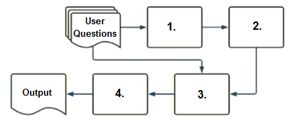 Select the correct sequence of components a user's questions will go through before the final output is returned. Use the diagram above for reference.