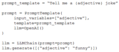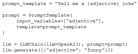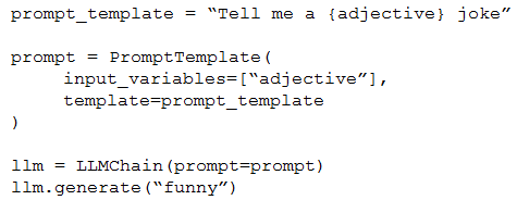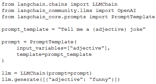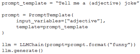 A Generative AI Engineer is testing a simple prompt template in LangChain using the code below, but is getting an error.
