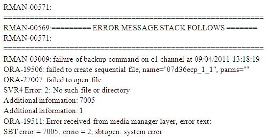 When using an EMC Avamar to backup an Oracle database, an error similar to the following is received: