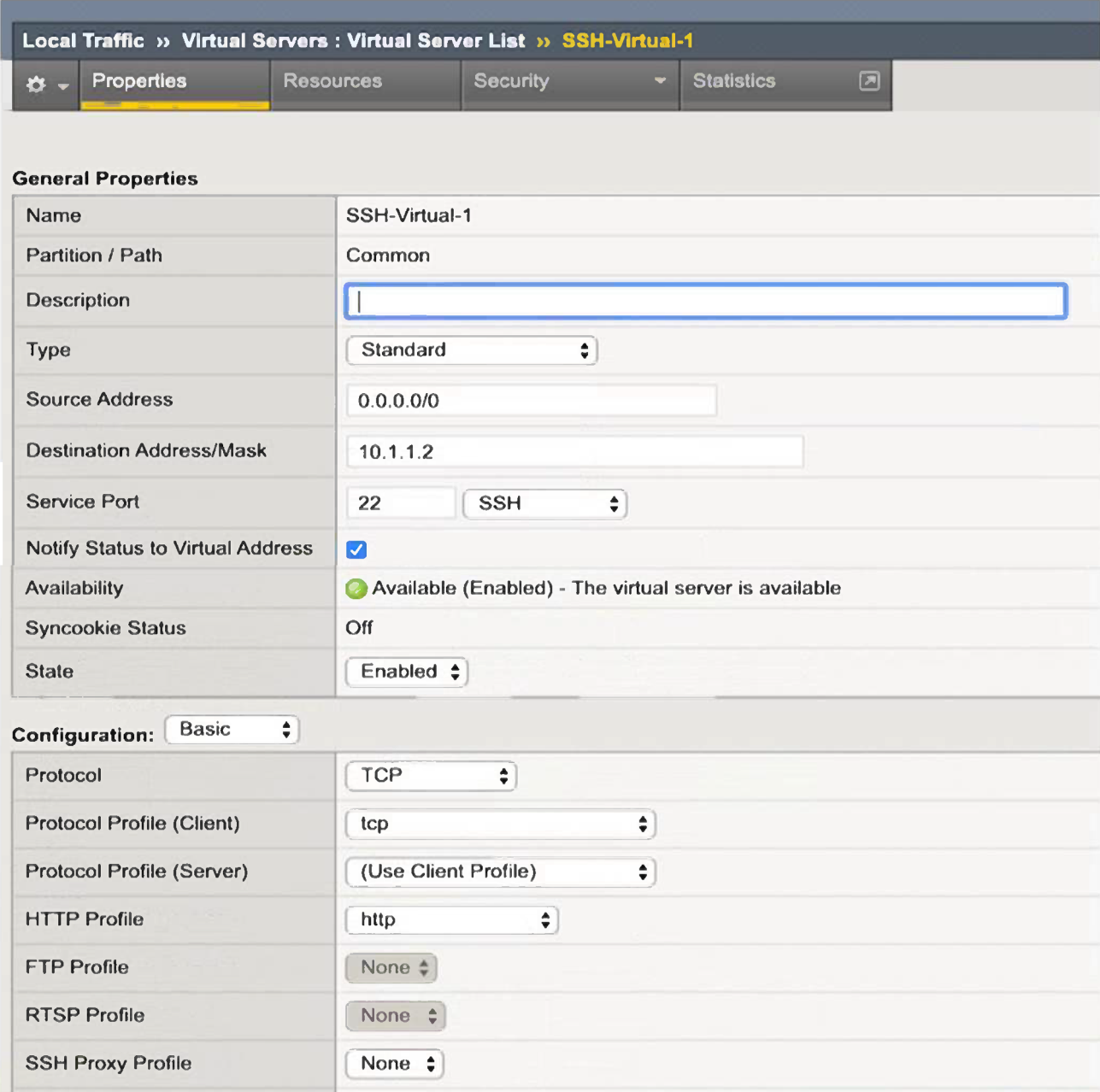A BIG-IP Administrator creates a new Virtual Server to load balance SSH traffic. Users are unable to log on to the servers.