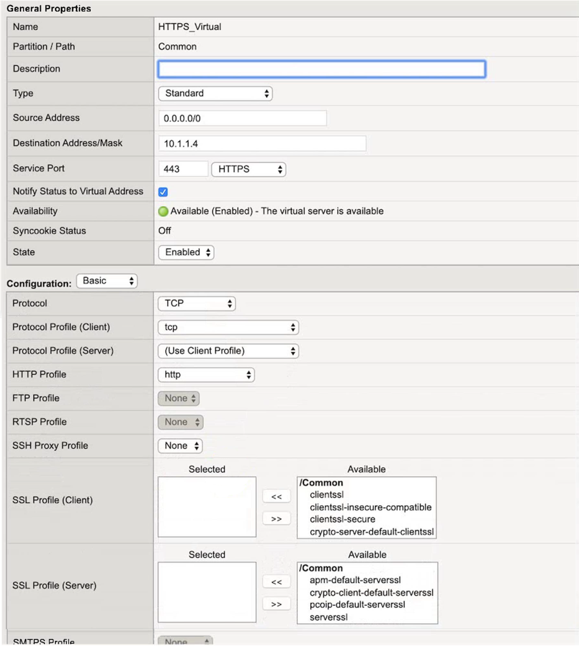 A BIG-IP Administrator configures a Virtual Server to handle HTTPS traffic. Users report that the application is NOT working.