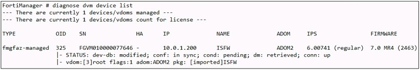A junior administrator is troubleshooting a FortiManager connectivity issue that is occurring with a managed FortiGate device.