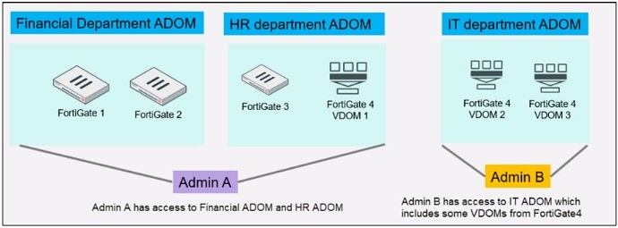 An administrator would like to create three ADOMs on FortiManager with different access levels based on departments.