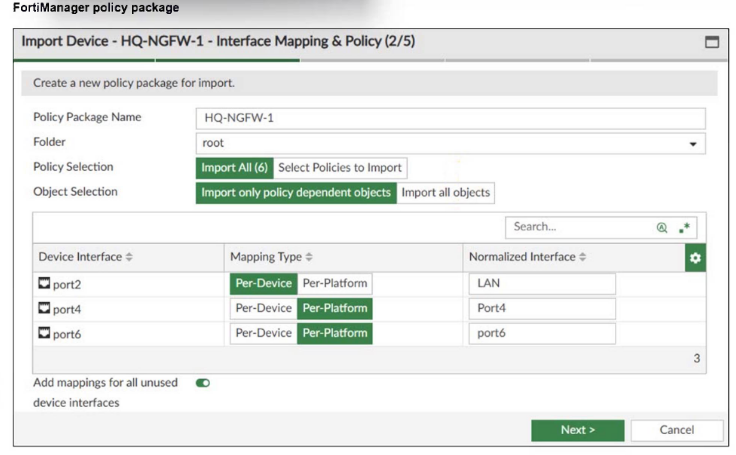 What can you conclude from the import policy package process of the HQ-NGFW- 1 device?
