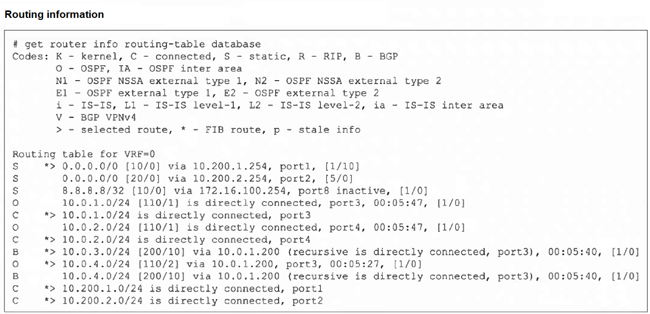 BThe default static route through 10.200.1.254 is not in the forwarding information base.