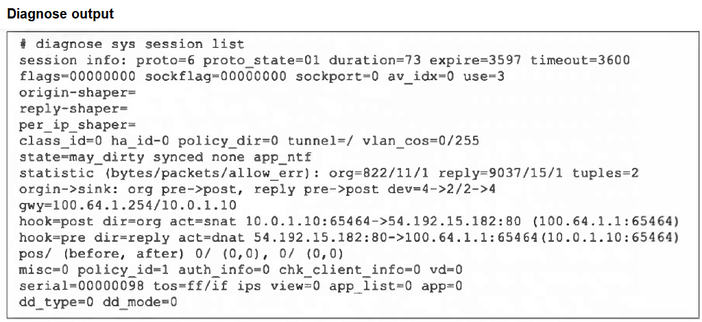 Refer to the exhibit, which shows the output of diagnose sys session list.