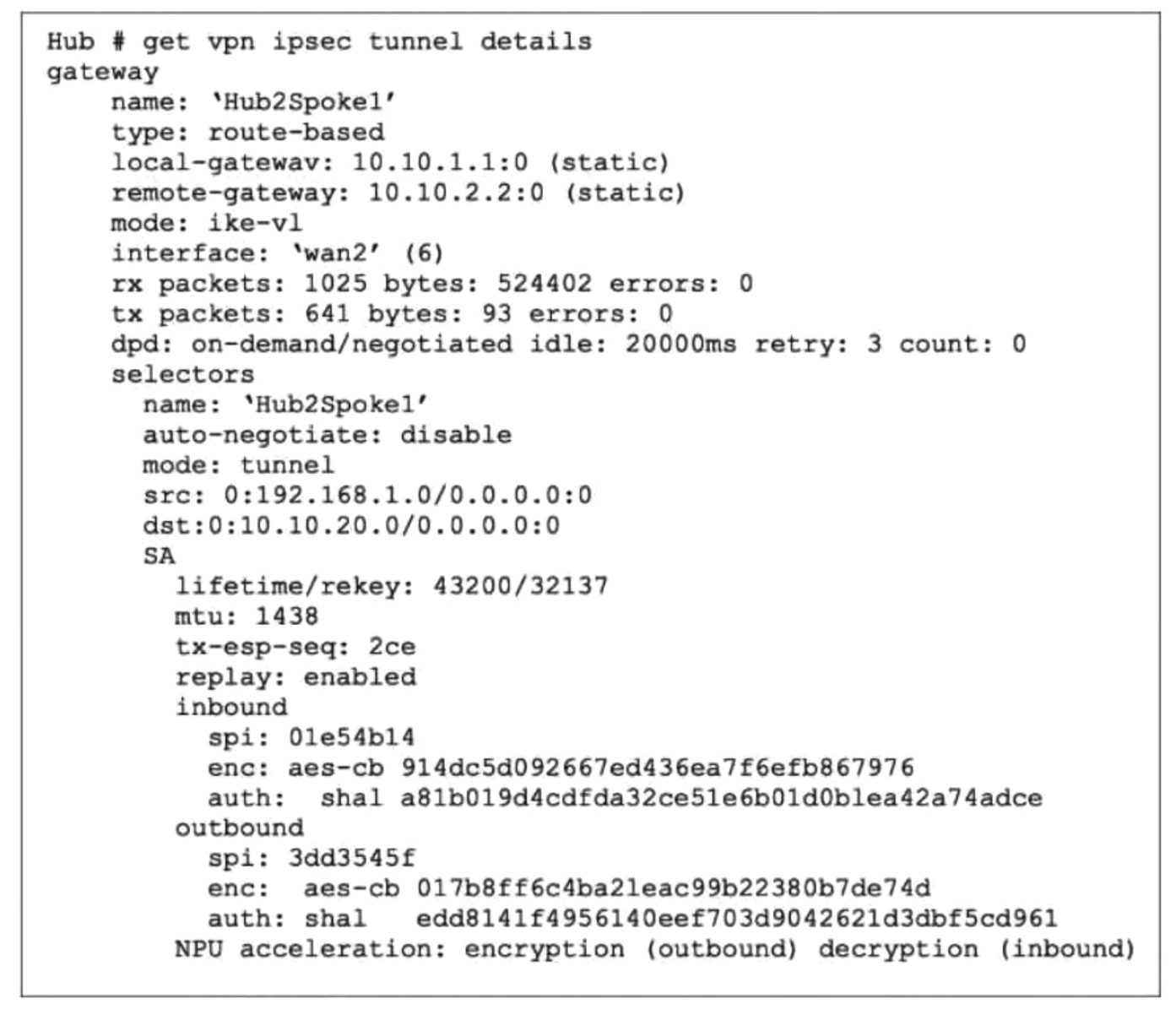 Partial output of the get vpn ipsec tunnel details command is shown.