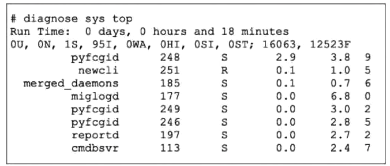 Which three pieces of information does the diagnose sys top command provide? (Choose three.)