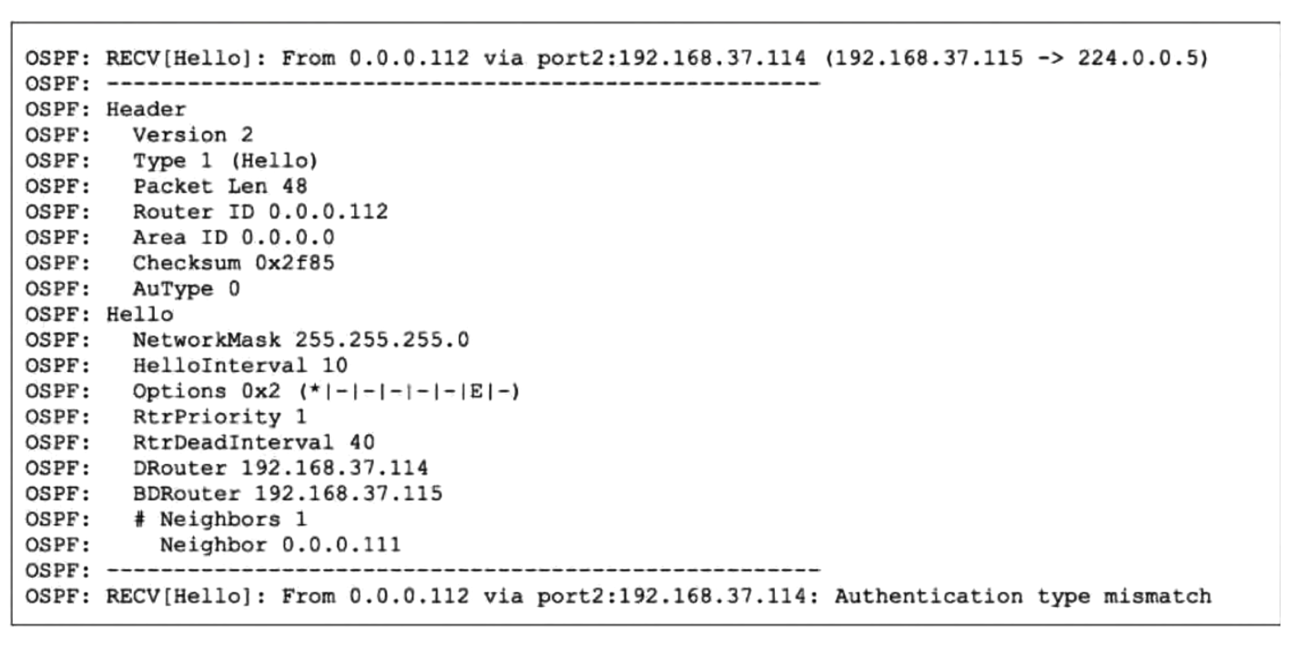 BThe local FortiGate has either OSPF cleartext or MD5 authentication configured.