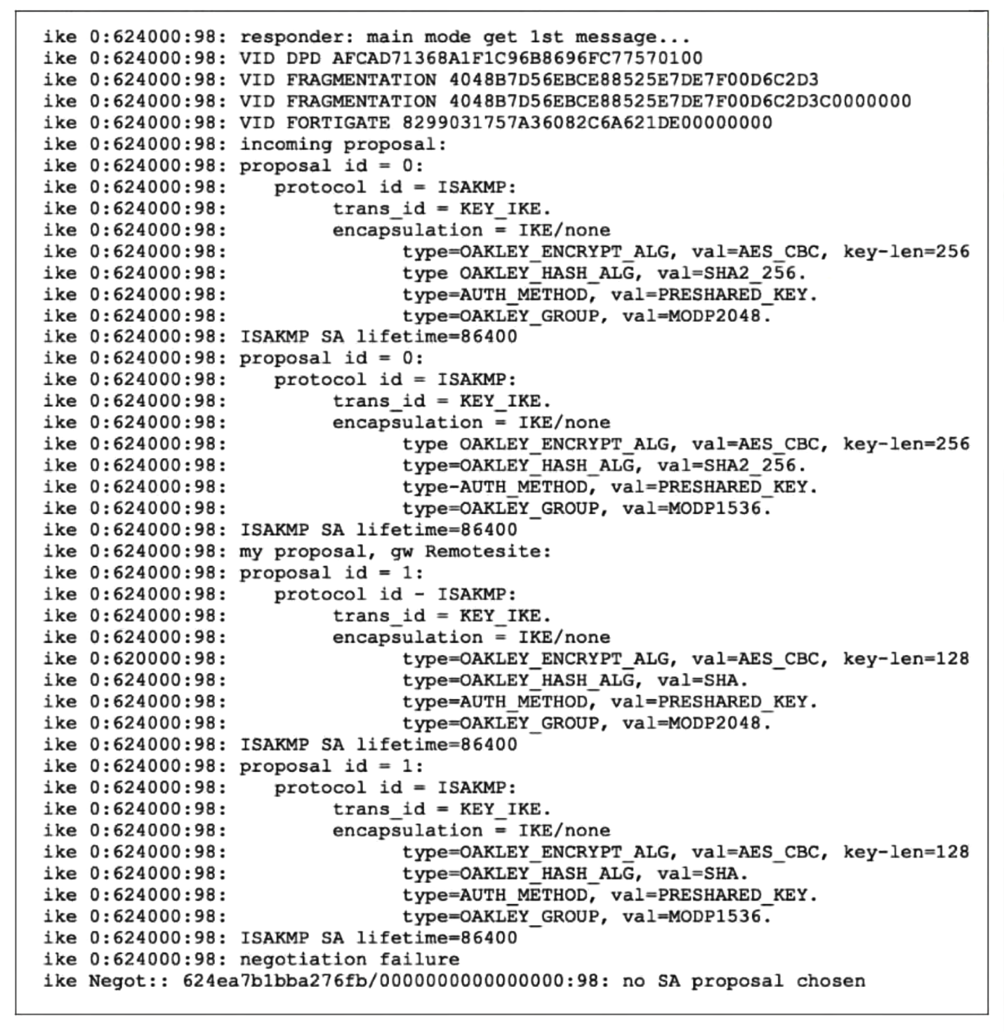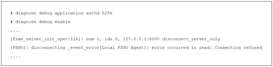 An administrator deployed FSSO in DC Agent mode but FSSO is failing on FortiGate. Pinging FortiGate from where the collector agent is deployed is successful. The administrator then produces the debug output shown in the exhibit.