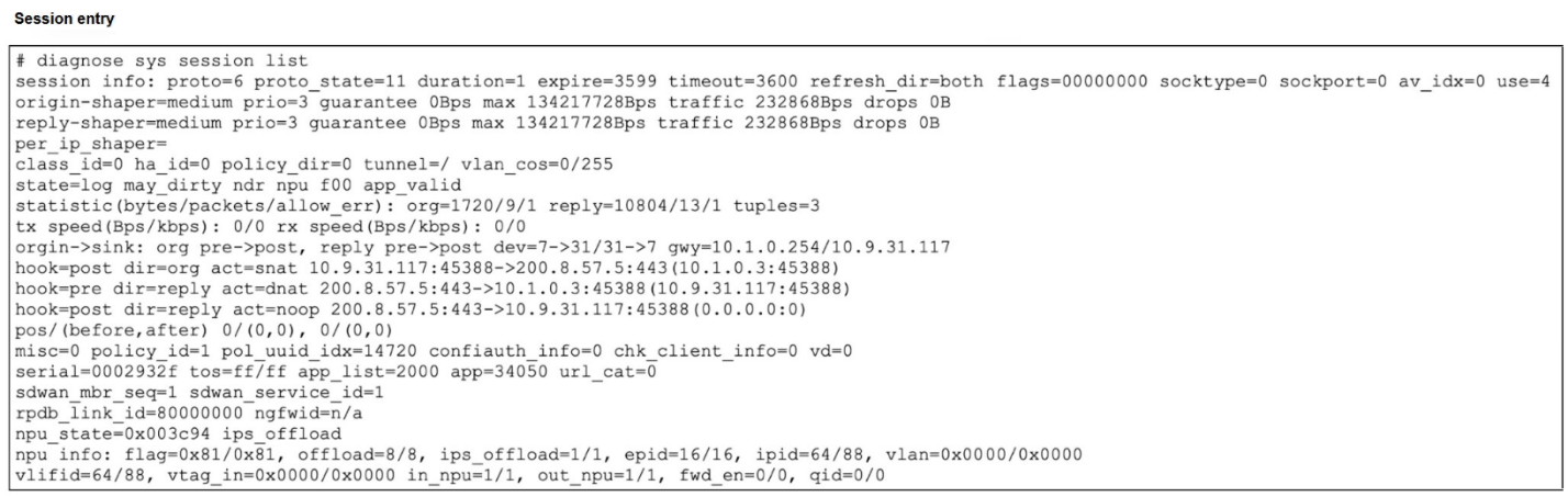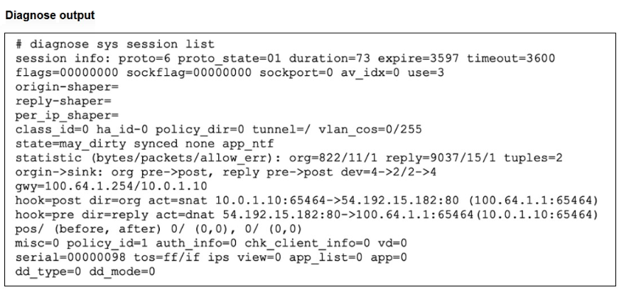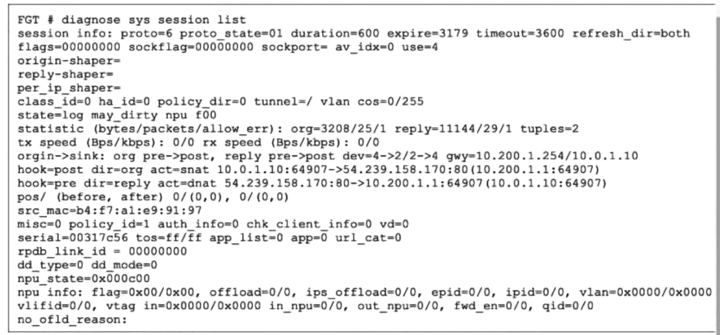 Which two statements about FortiGate behavior relating to this session are correct? (Choose two.)