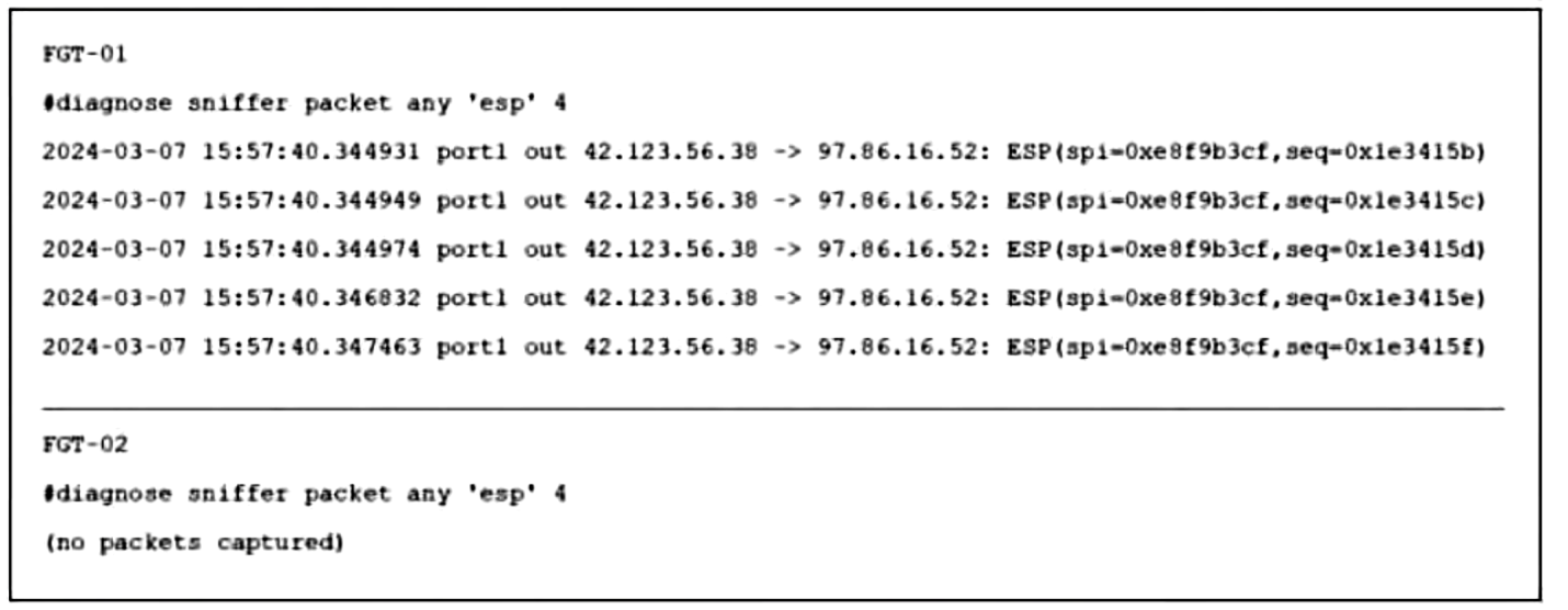 AThe administrator configured the wrong remote peer IP address on FGT-01.