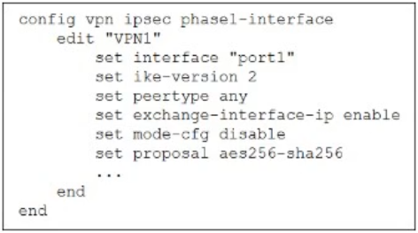 The administrator configured the IPsec tunnel VPN1 on a FortiGate device with the parameters shown in exhibit.