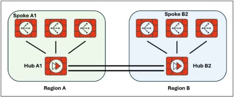 You plan a large SD-WAN deployment for a global company. You want to divide the network architecture into five geographical regions and install two hubs in each region for increased redundancy.