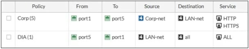 BFortiGate steers traffic for social media applications according to the service rule 2 and steers traffic through port2.