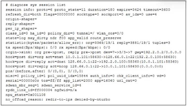 Refer to the exhibit that shows a diagnose output on a FortiGate device.