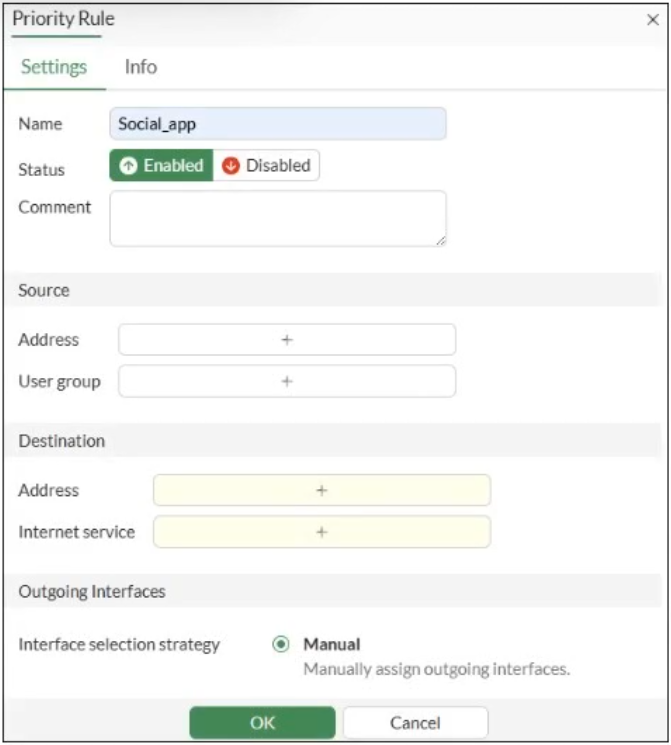 The administrator wants to know through which interface FortiGate will steer traffic from local users on subnet 10.0.1.0/255.255.255.192 and with a destination of the social media application Facebook.