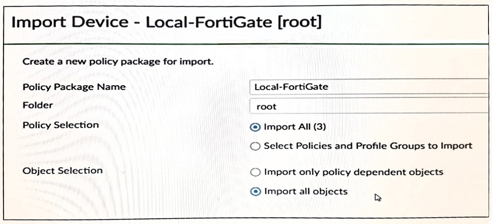 An administrator is importing a new device to FortiManager and has selected the shown options. What will happen if the administrator makes the changes and installs the modified policy package on this managed FortiGate?