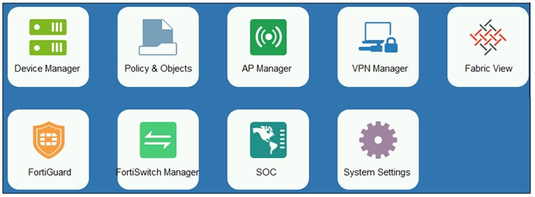 An administrator logs into the FortiManager GUI and sees the panes shown in the exhibit.