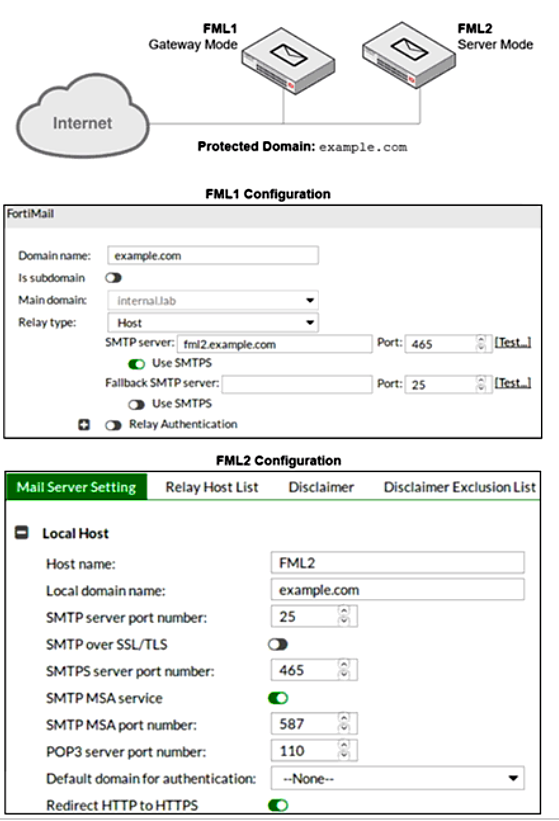 What is the expected outcome of SMTP sessions sourced from FML1 and destined for FML2?